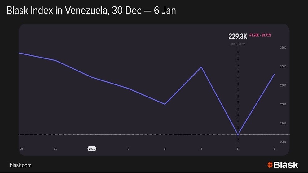 The operation involving US forces and the subsequent transport of the former president to New York raised immediate questions about economic continuity. However, the Blask daily Index suggests that digital user behavior did not suffer a collapse. Between January 1 and January 4, the index hovered within a tight corridor in the high 200,000 zone.