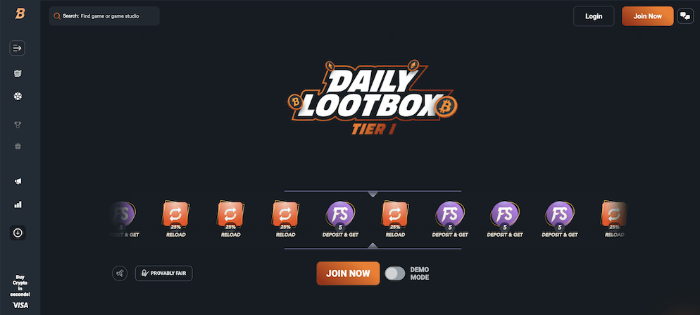 - Daily Lootbox: Grants free spins and bonus money daily.