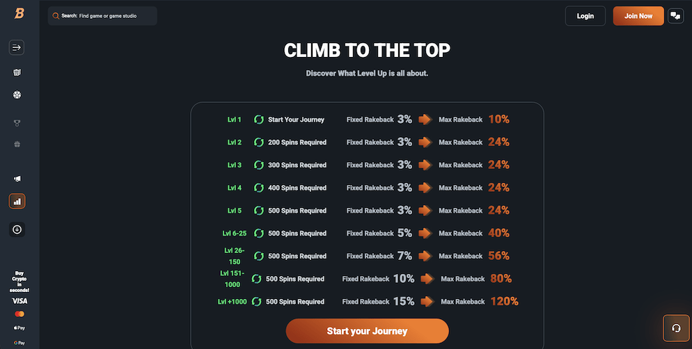 This structure features 9 tiers and over 1,000 levels. Players earn Rakeback (up to 120%) and other rewards as they climb the ranks by playing and accumulating points. This massive scaling system ensures continuous rewards for dedicated players.