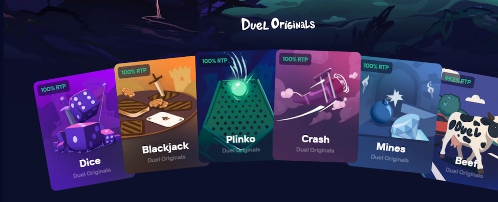 - Duel Originals (Dice, Crash, Plinko, Mines)