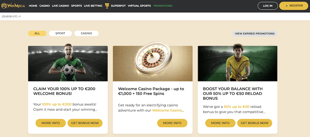 WinMega keeps the excitement high with a diverse and highly generous lineup of bonuses for both new and existing players, with a particular emphasis on rewards and free spins. All in all, this operator has a total of 11 promotions, including 9 regular, and 2 welcome bonuses.