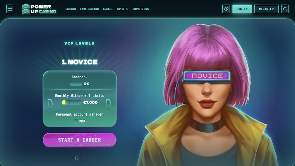 Visually outstanding and one of the best on the market, the PowerUp Casino platform has established itself as a premier destination for players seeking a high-octane, futuristic gaming experience. Based on a captivating retro arcade theme with a dash of the future, the platform offers a unique and entertaining aesthetic that stands out in a crowded market. Boasting a massive library and a gamified player journey featuring the Level Up game, PowerUp delivers an innovative, rewarding, and thoroughly modern iGaming environment.