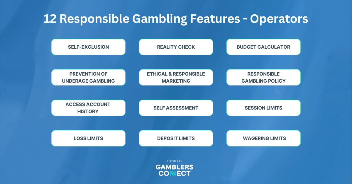 For online operators, our evaluation criteria focus on the direct tools available to players to manage their habits. This includes Reality Checks & Session Limits, which provide notifications and time limits to manage play, and Self-Exclusion & Break Options that allow users to pause or stop gambling completely. We heavily weigh Financial Limits, such as Deposit, Wagering, and Loss limits, to control spending. Additionally, we assess Protection Measures regarding the prevention of underage gambling and access to account history, as well as the availability of Support Tools like self-assessment tests and budget calculators.